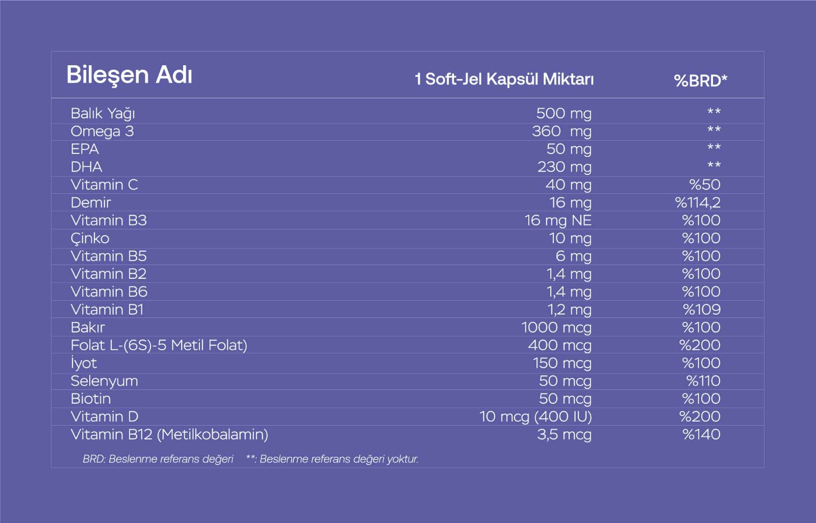 Vitadevs, Omega-3, folik asit, iyot başta olmak üzere vitamin ve minareller ile hamileliği planlarken, hamilelik boyunca ve emzirme döneminde ihtiyacın olan besin desteğini sağlar.